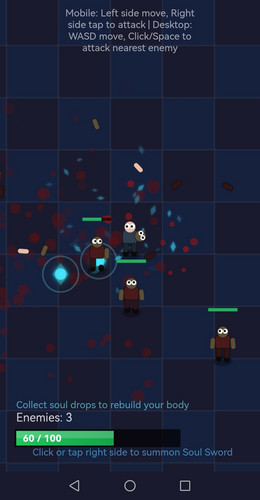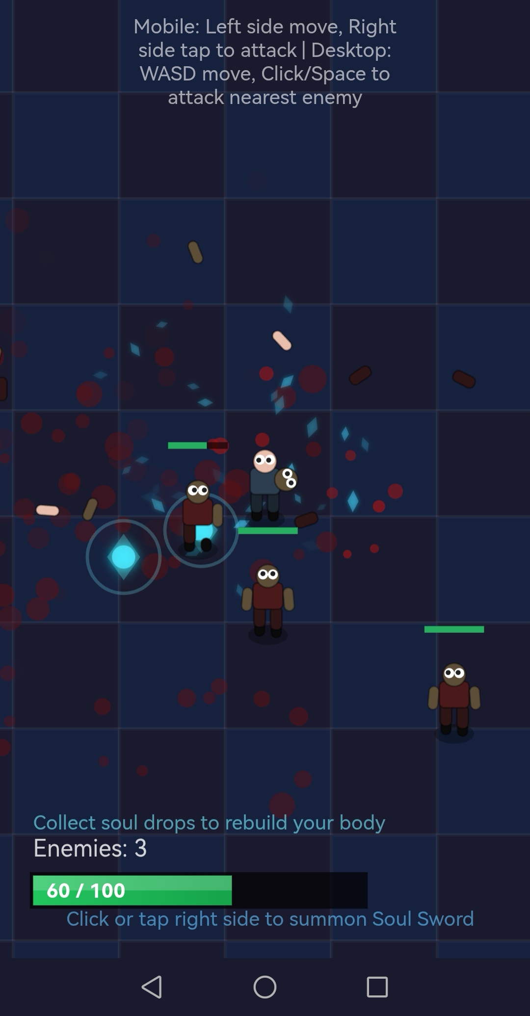 This is a 2D ragdol style hack and slash game made with different body parts that can be chopped off and rebuilt as you fight and unlock new abilities.